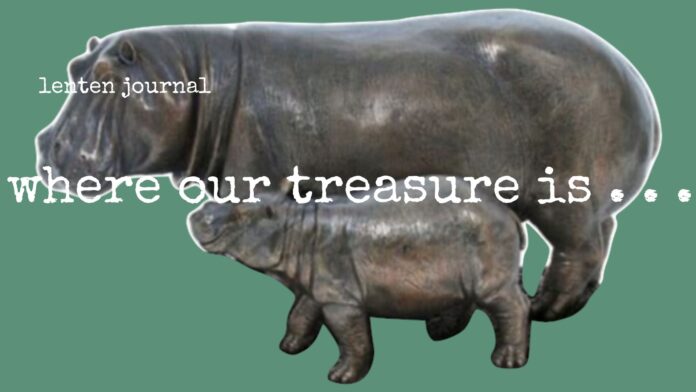 Where our treasure is, there will our heart be also. How then can we use our possessions to connect us to one another, to remind us of who we treasure? How do we keep our things from having a grip on us? Those questions make me think about the hippos in my office that you gave me at my installation. If you told me I had to go in my office and pick one thing before the building fell down, I would pick up those hippos and run because they are such a symbol of love to me.